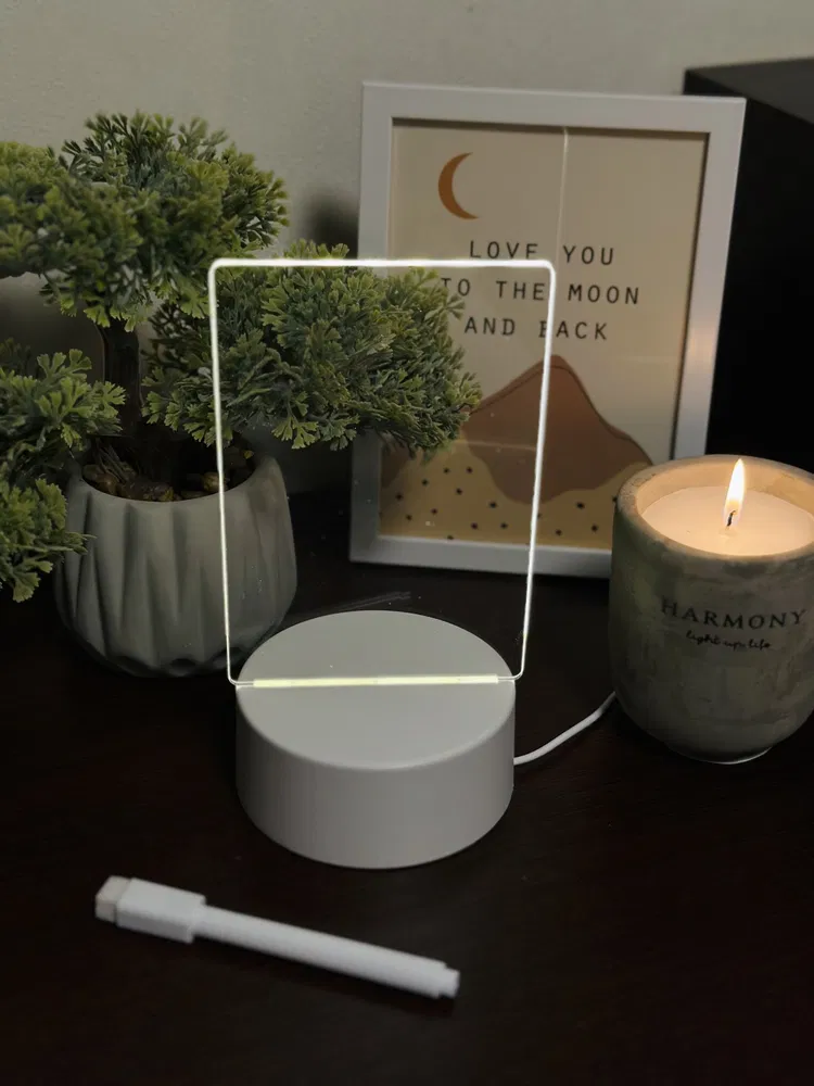 Нічник з маркером на водній основі, що дозволяє писати та легко стерти написане. Це зручний інструмент для записів та планування, який дозволяє зберігати ваші нотатки та ідеї. Або залишати любовні послання!